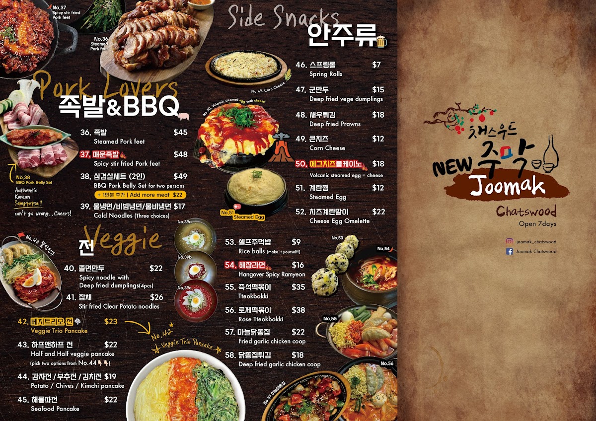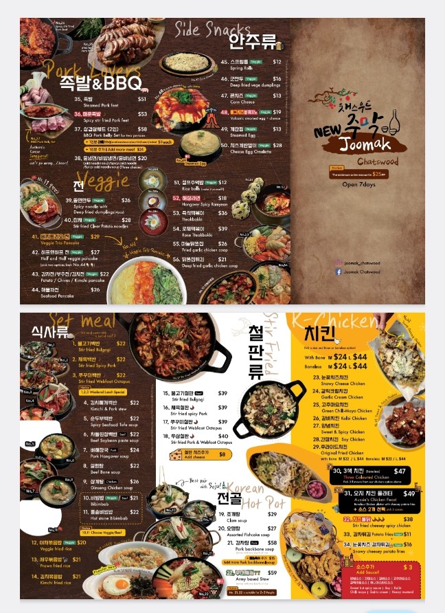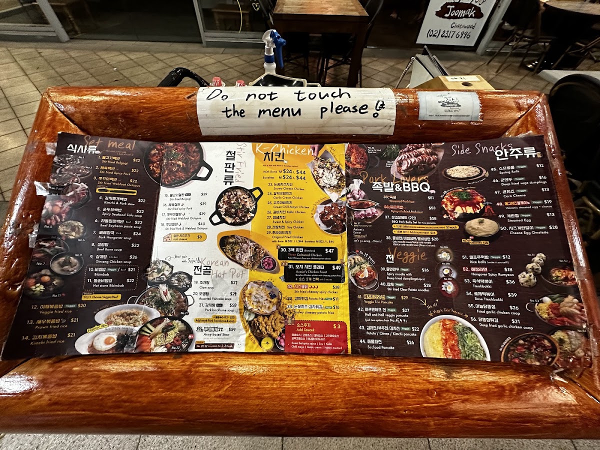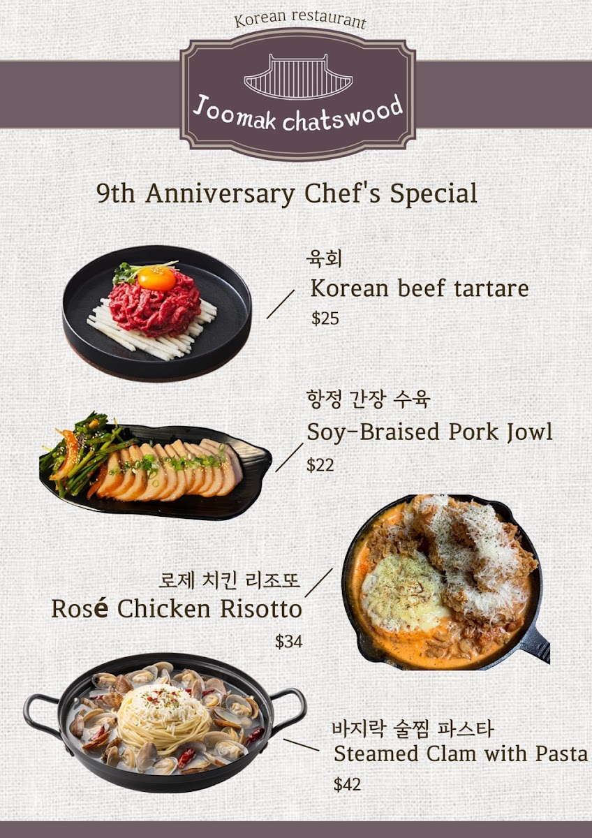 JooMak Korean Restaurant Chatswood Menu