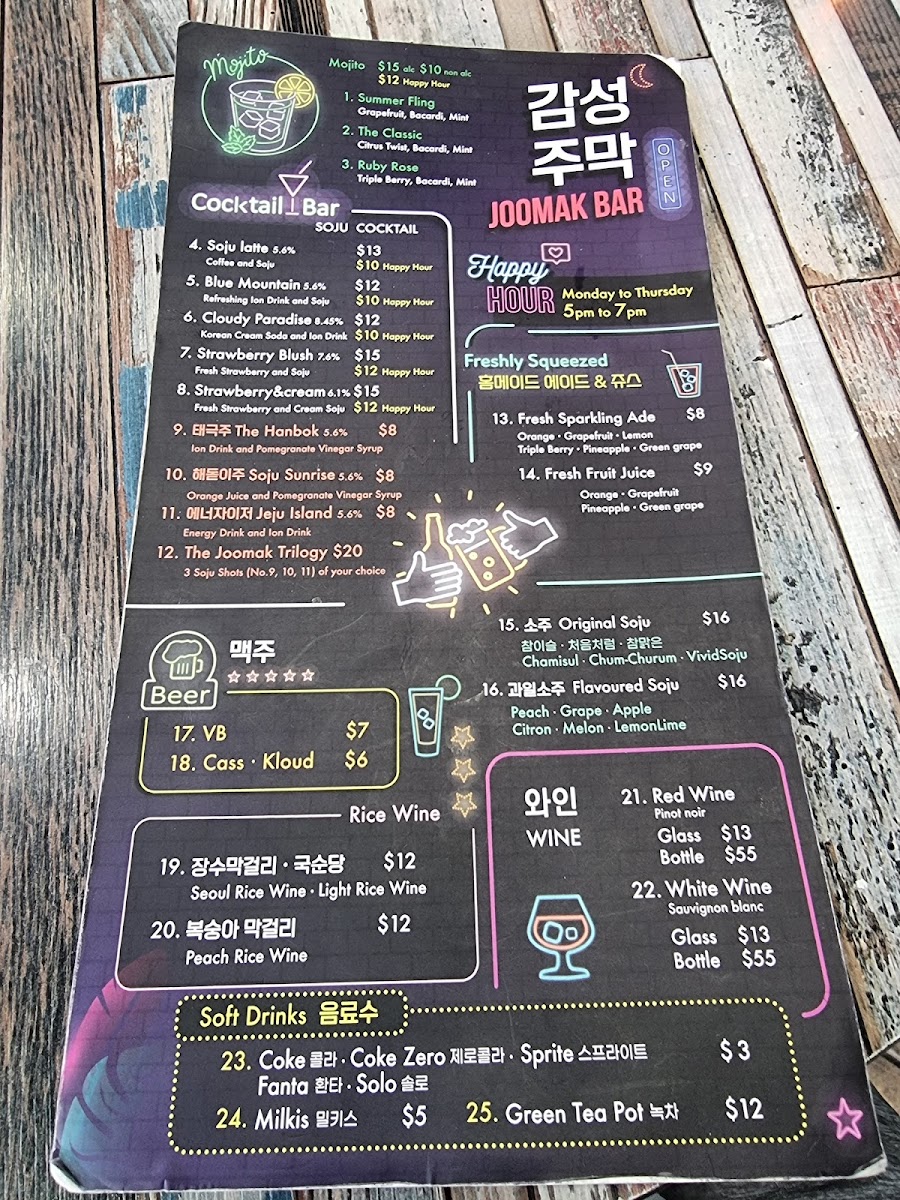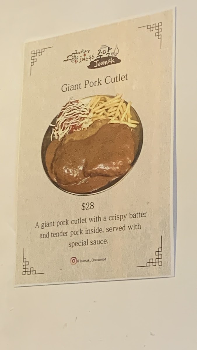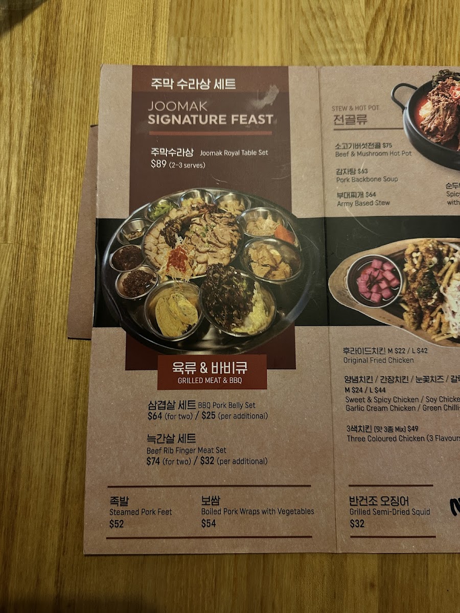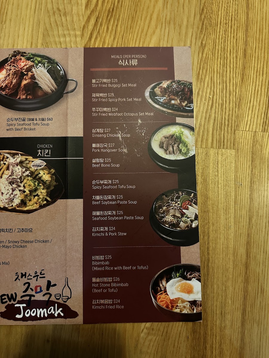 JooMak Korean Restaurant Chatswood Menu